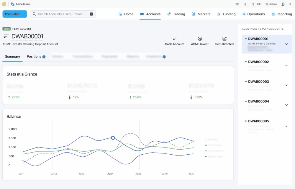 Drive Hub is the centralized, one-stop data nexus that provides a complete view and management of enterprise and end-user accounts, orders, settlements, operations, servicing, and reporting. Its primary users are client operation teams and Drivewealth internal teams.