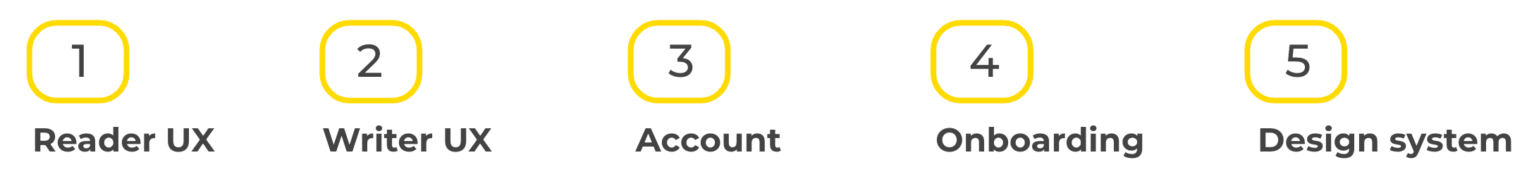 The first focus area is the reader's UX, which includes the homepage, the idea view, the author page, the follow system, and the search. We went through numerous rounds of design iterations to perfect these features.