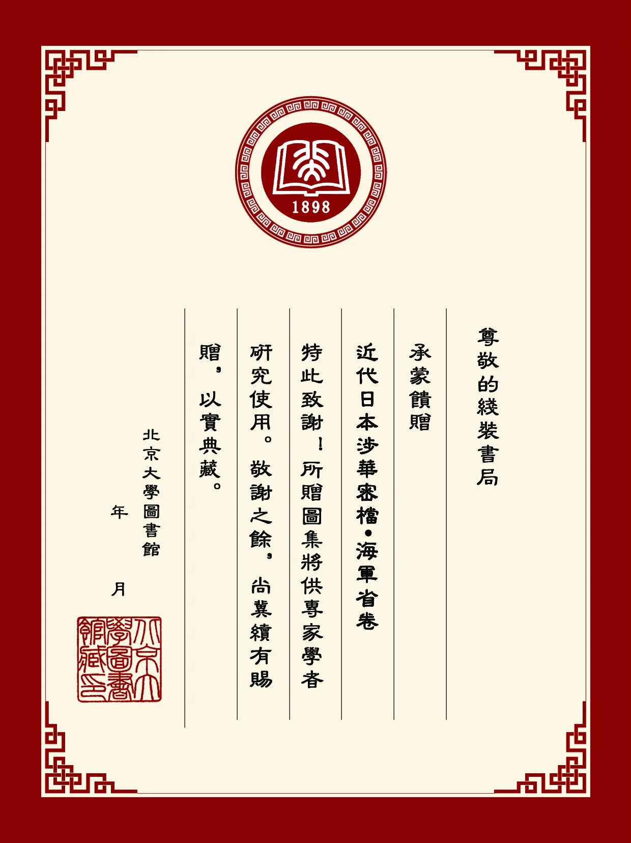 Book Cover - Rules and Regulations of Peking University Library