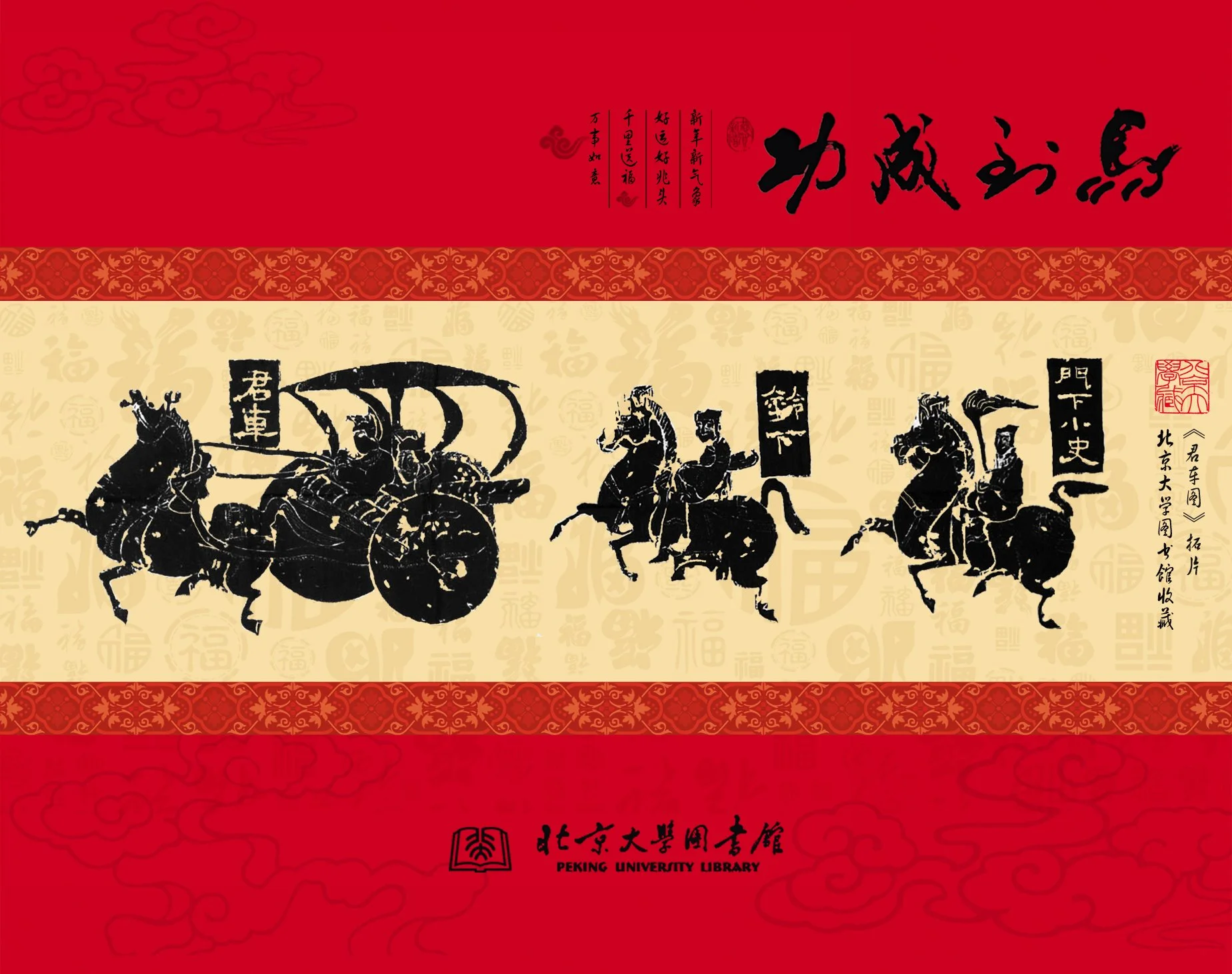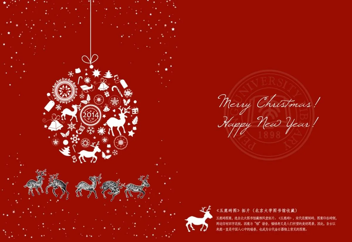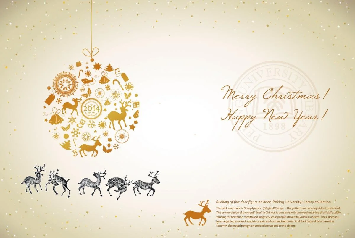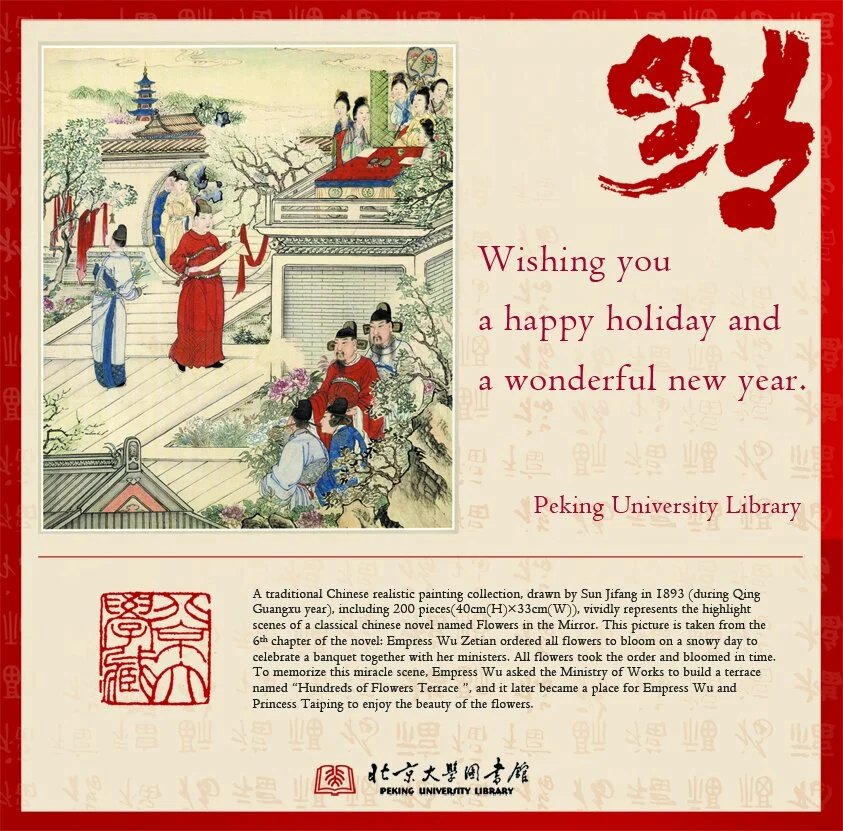 Chinese new year greeting card - The primary image utilized in the design of the greeting card is sourced from the collection of rare ancient books in the Peking University Library.