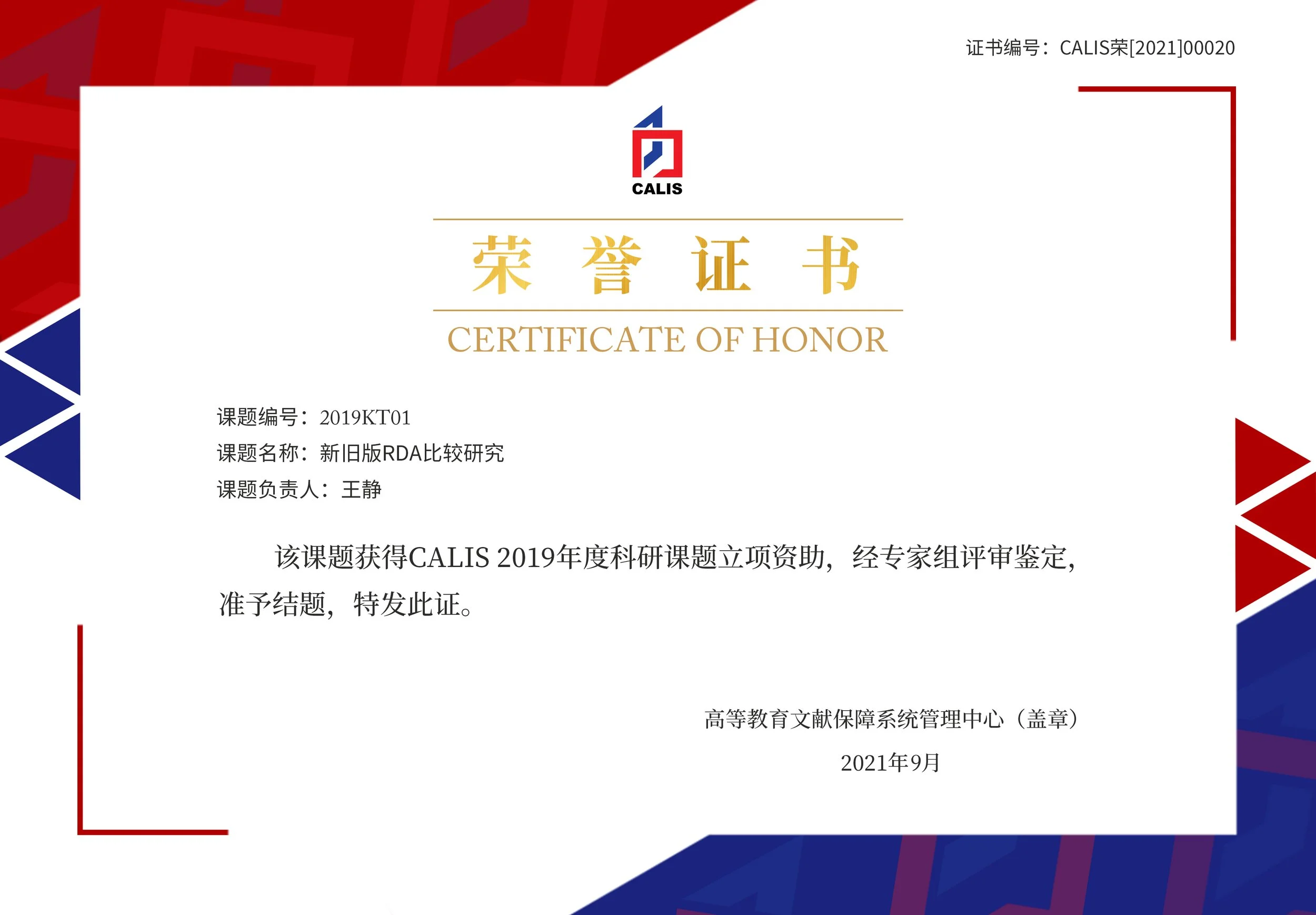 Certificate of Scholarship